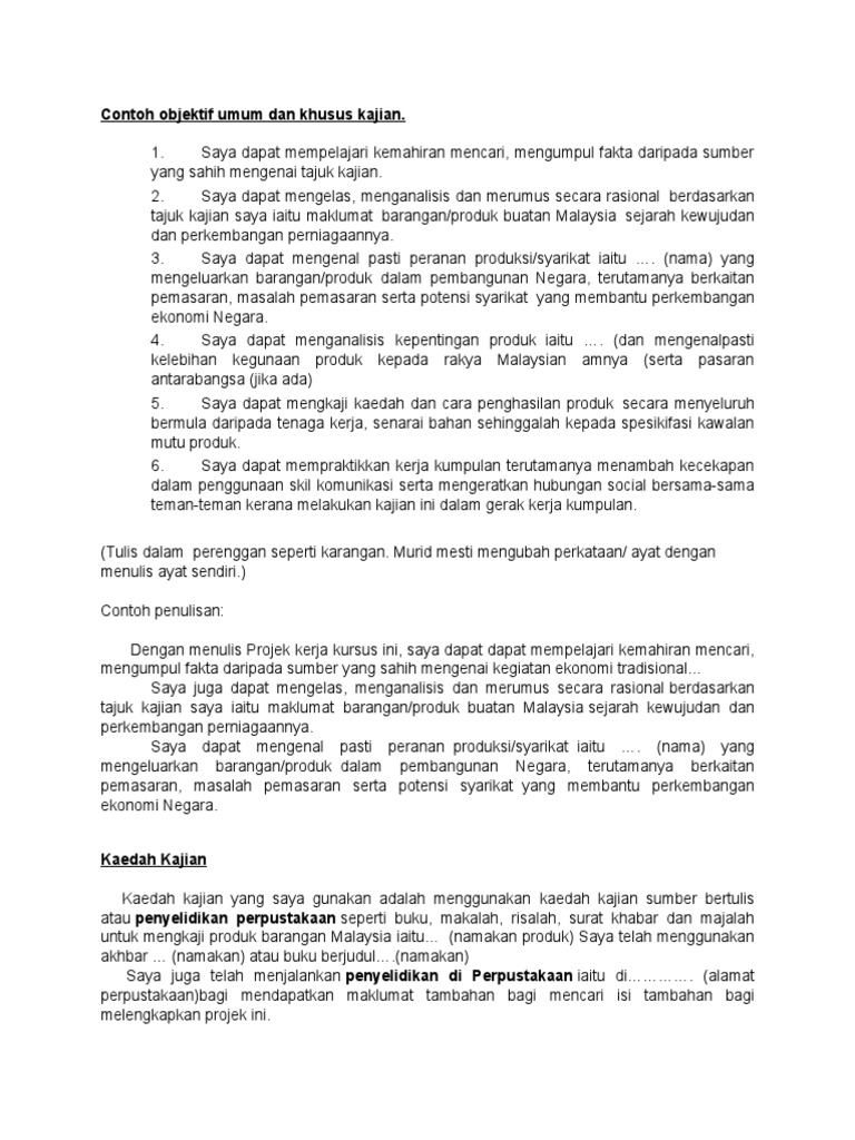 Sejarah Contoh Objektif Umum Dan Khusus Kajian En Syafarizwan Pdf
